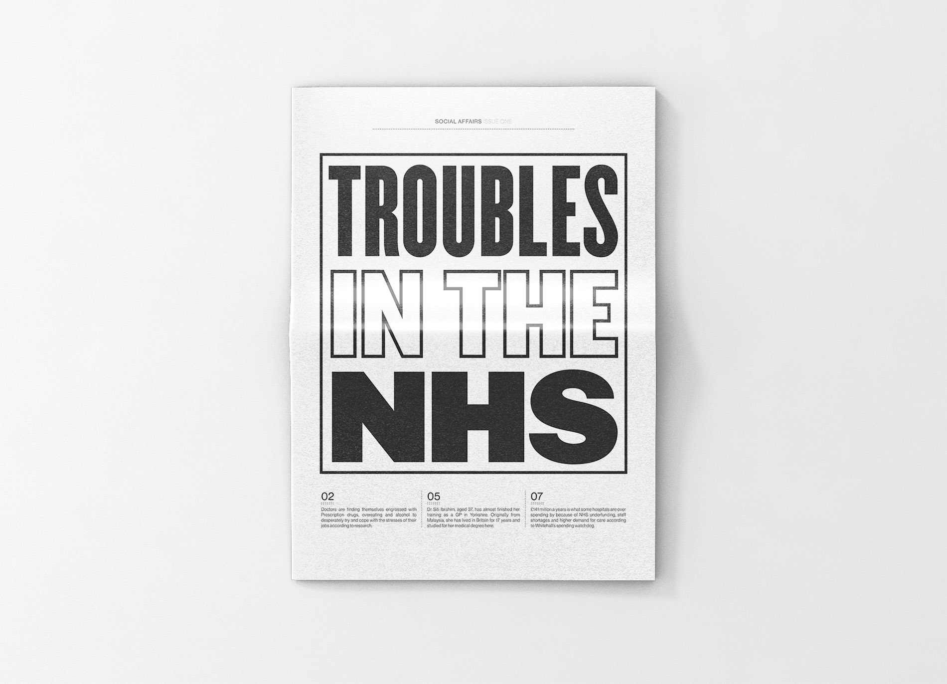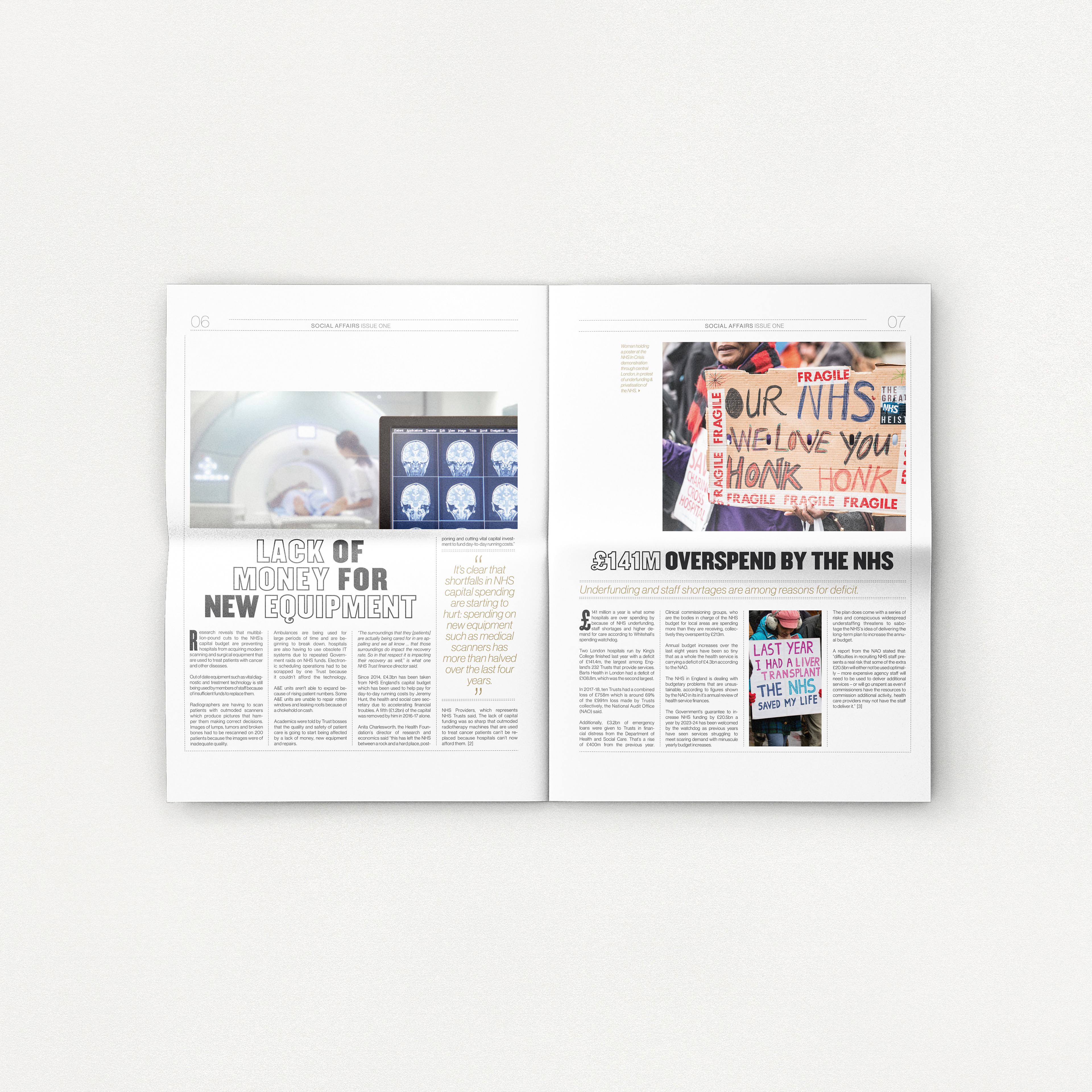 SAVE OUR NATIONAL HEALTH SERVICE Client - Independent newsprint magazine The Brief - Create a newsprint style magazine series. The first edition of the series based on ‘Troubles In The NHS’.